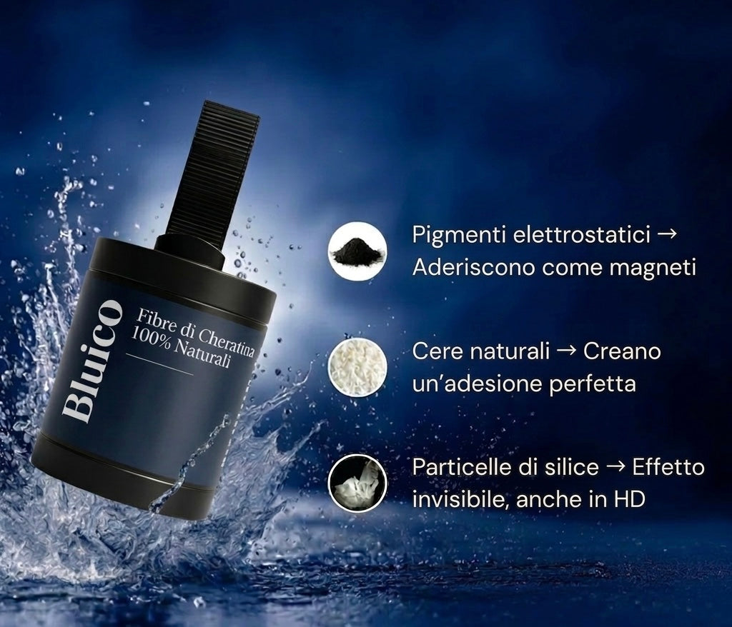 In pochi minuti, BLUICO aiuta a coprire le zone diradate, soprattutto su vertex/crown, riducendo visibilmente il “bianco” della cute che spesso tradisce il diradamento sotto luce e foto.